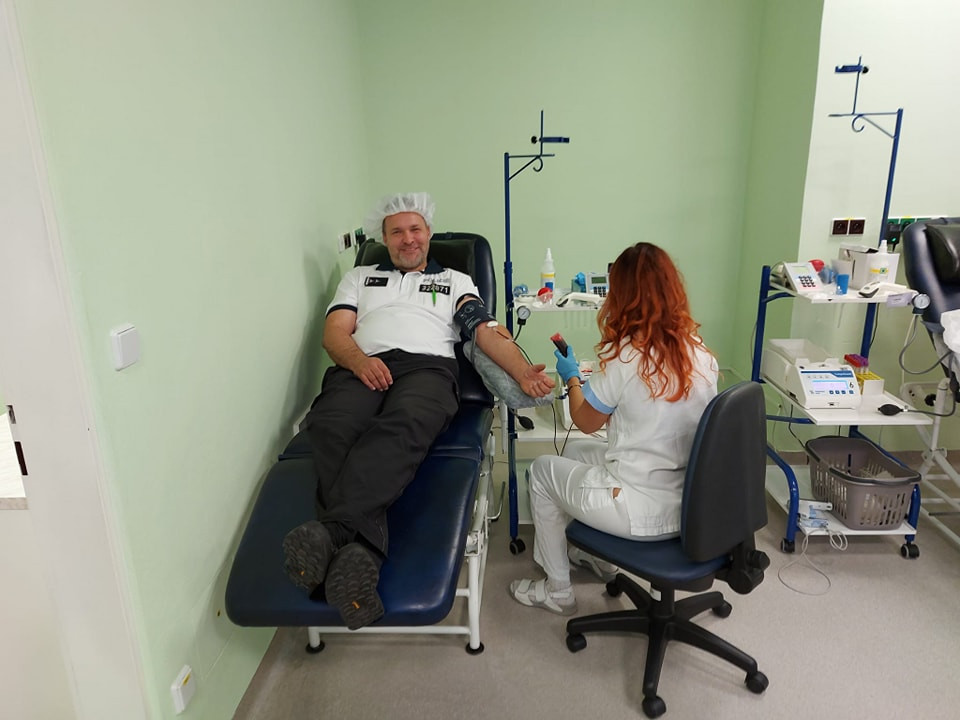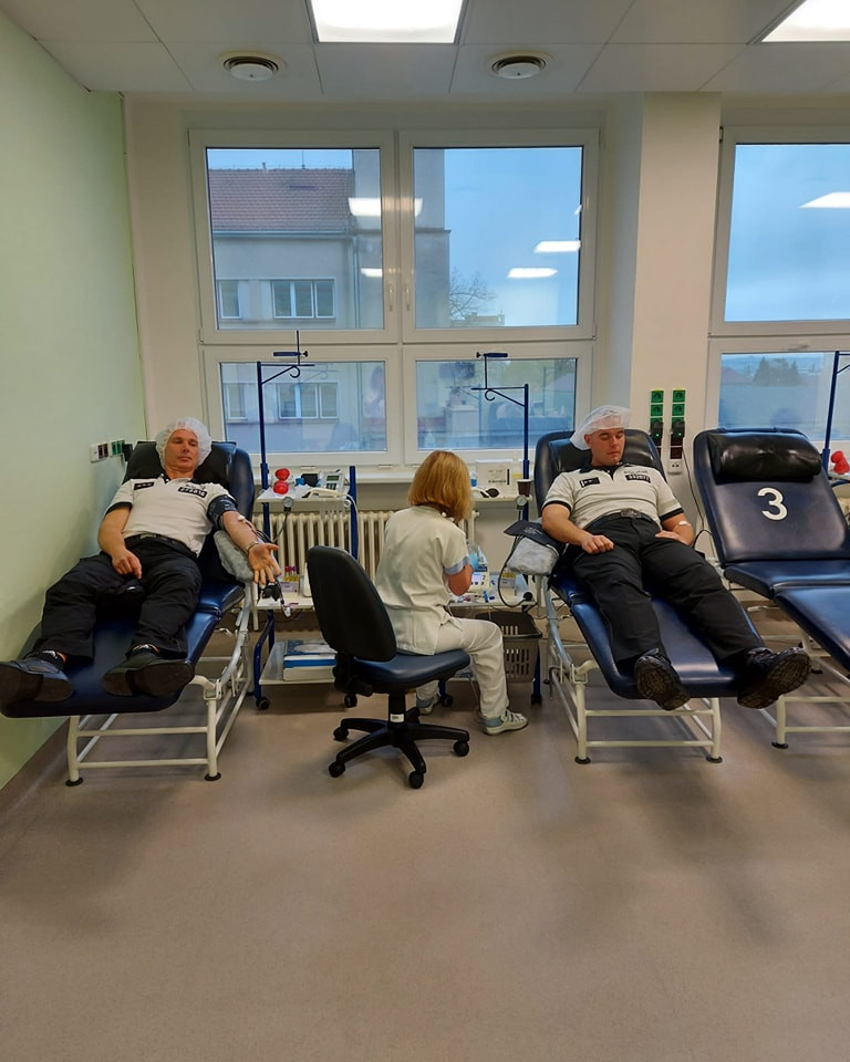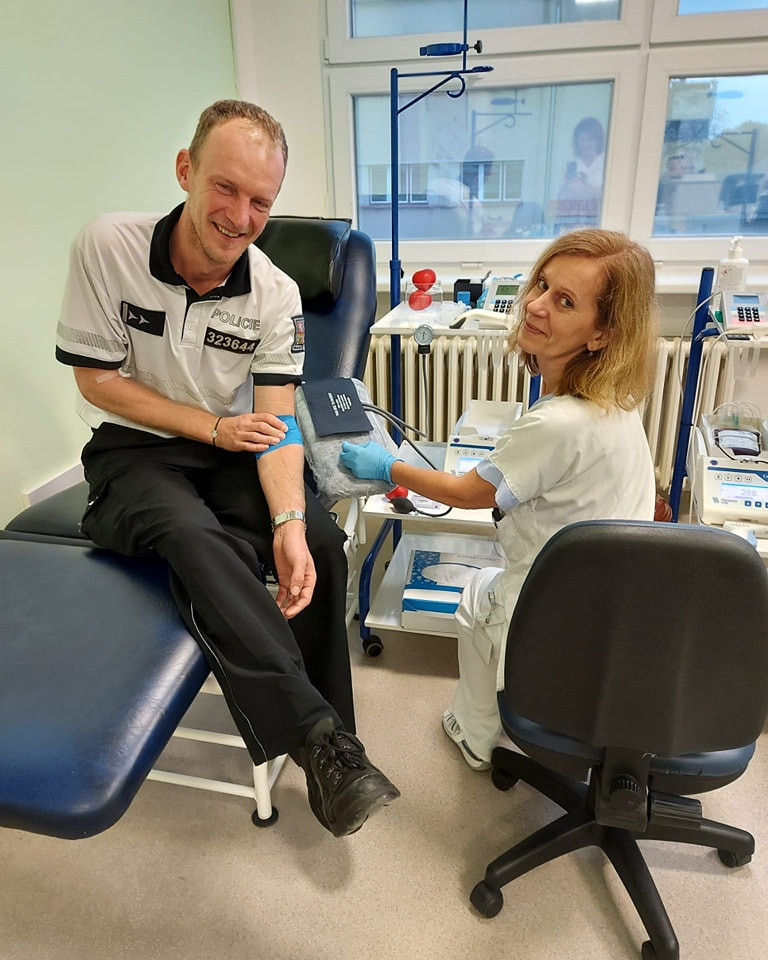 Dálniční policisté z Velkého Beranova hromadně darovali krev. Pro osm z nich to byla premiéra