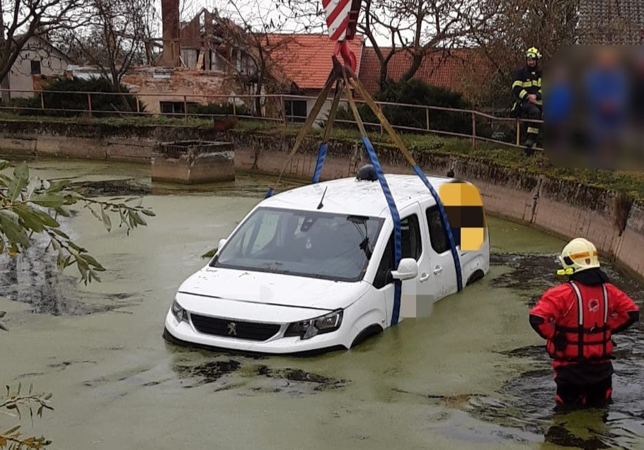 Pár vteřin nepozornosti. Řidička v kopci nezajistila auto, to narazilo do hráze a sjelo do rybníka