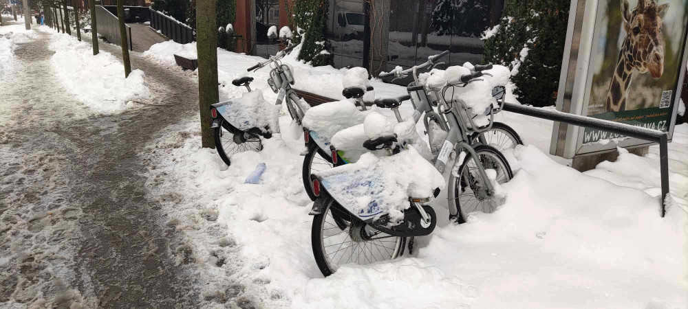 ANKETA: Žádné zimování, sdílená kola v Jihlavě jezdí i ve sněhu. Město teď řeší, jestli pořídit i koloběžky