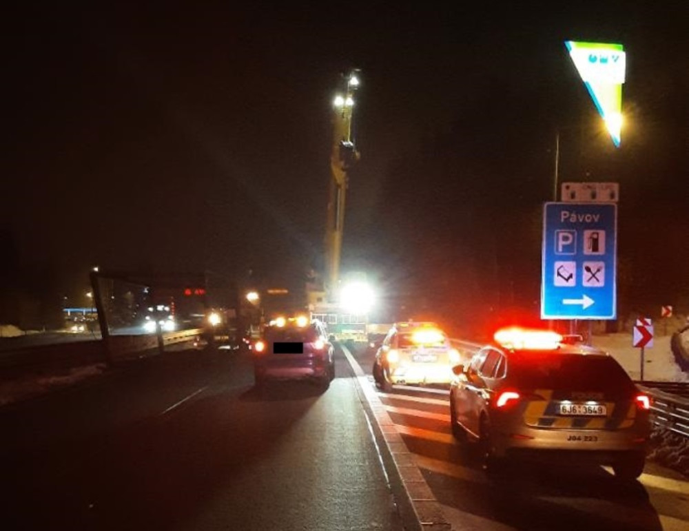Řidič vezl po D1 železnou lávku a nevešel se pod most. Lávka se utrhla z přívěsu a zůstala ležet v levém pruhu