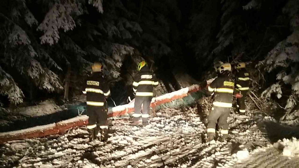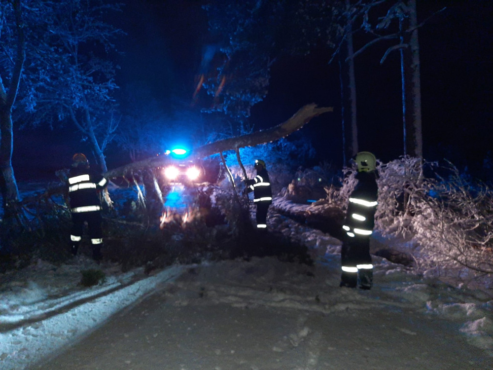 Hasiče a policisty zaměstnávají popadané stromy a nehody. Od půlnoci se stalo skoro 50 nehod