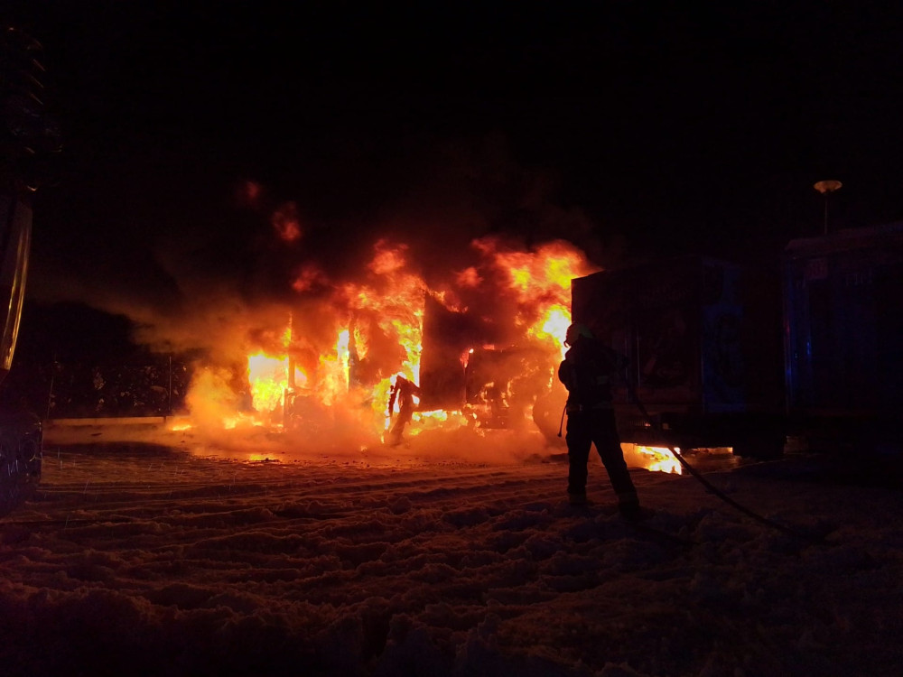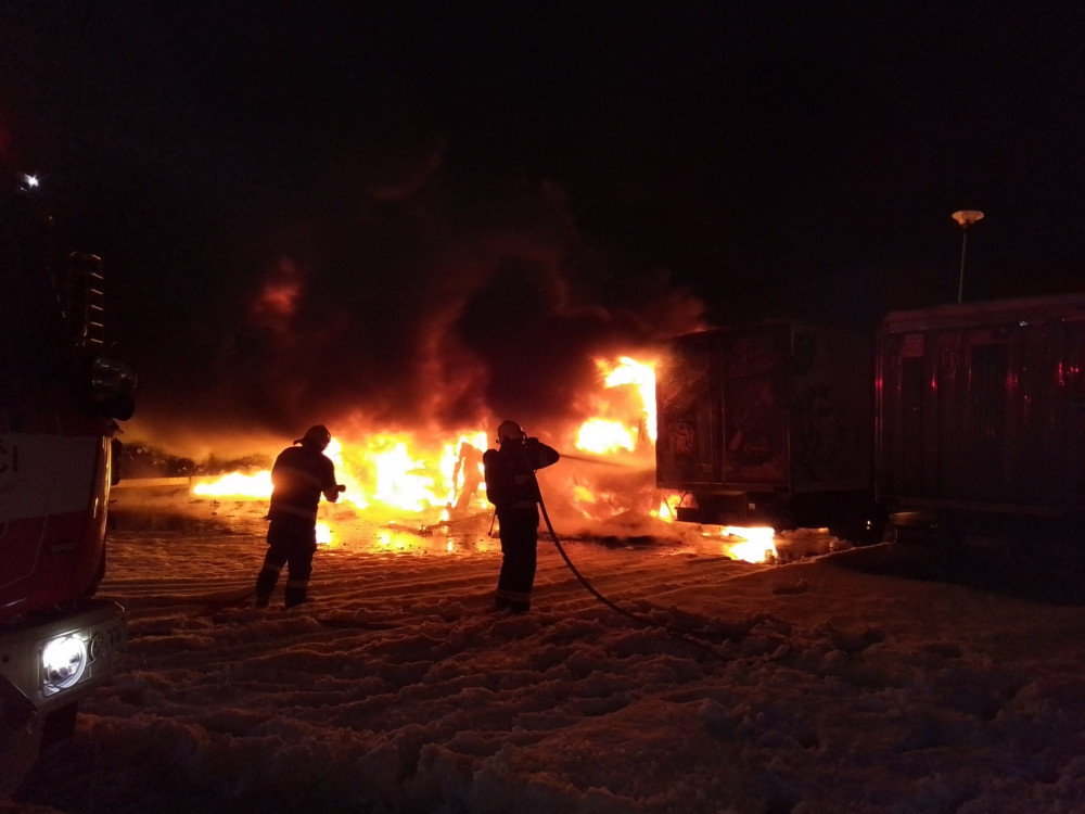FOTO: Hasiči ráno vyjížděli k požáru několika kamionů ve Velkém Meziříčí
