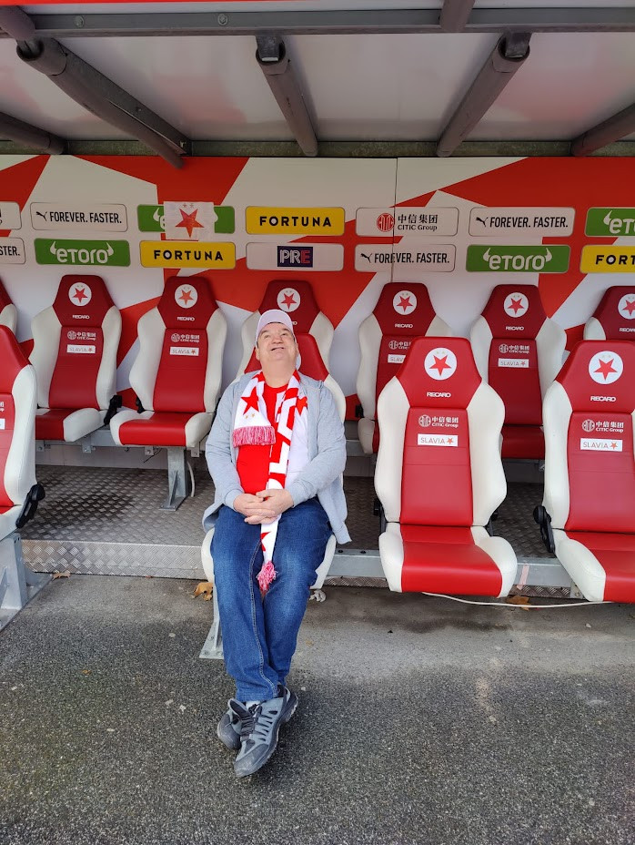 Hynek Huml na střídačce fotbalové Slavie