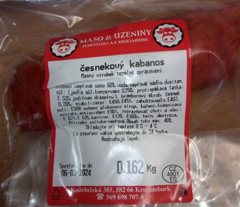 Veterináři varují před konzumací závadného česnekového kabanosu z Krucemburku