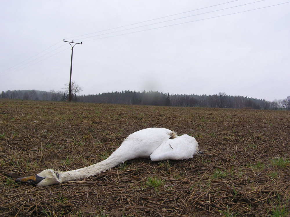 FOTO: Dráty elektrického vedení na Havlíčkobrodsku zabíjejí labutě. Ochránci jednají s energetiky