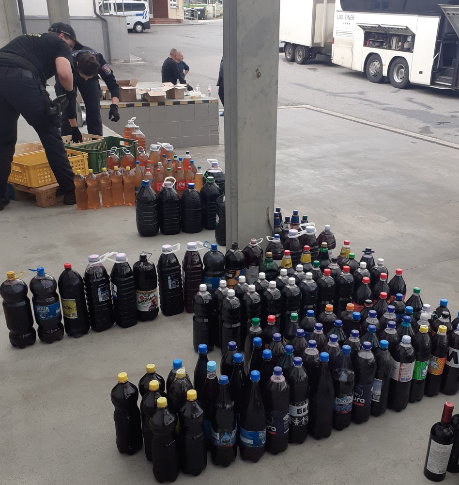 Místo lidí alkohol. Řidič autobusu vezl z Moldavska do Londýna alkohol, celníci na D1 zabavili přes 600 litrů