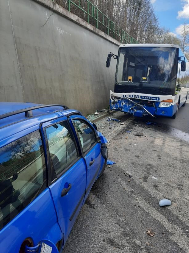 FOTO: U Řehořova se srazila řidička s autobusem, ve kterém jelo 39 cestujících. Čtyři lidé se zranili