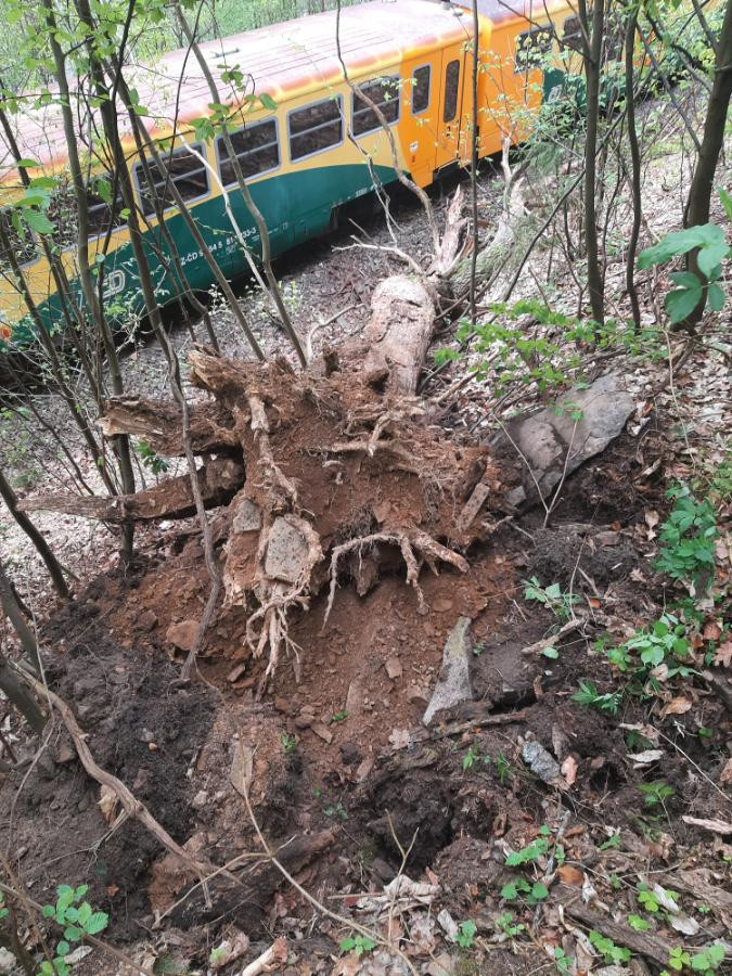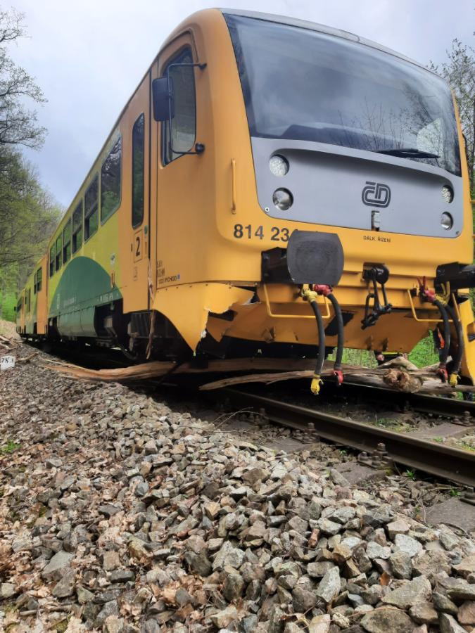 FOTO: Strojvedoucí nezvládl zabrzdit. Vlak s patnácti cestujícími na Žďársku narazil do stromu
