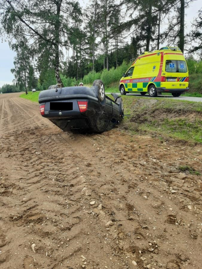 Muž se opil a v Polné skončil s autem na střeše. Na alkoholtesteru svítilo přes dvě promile