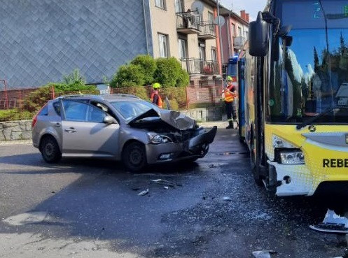 Řidička ve Žďáru odbočovala a narazila do autobusu, který jel po hlavní. Skončila v péči lékařů