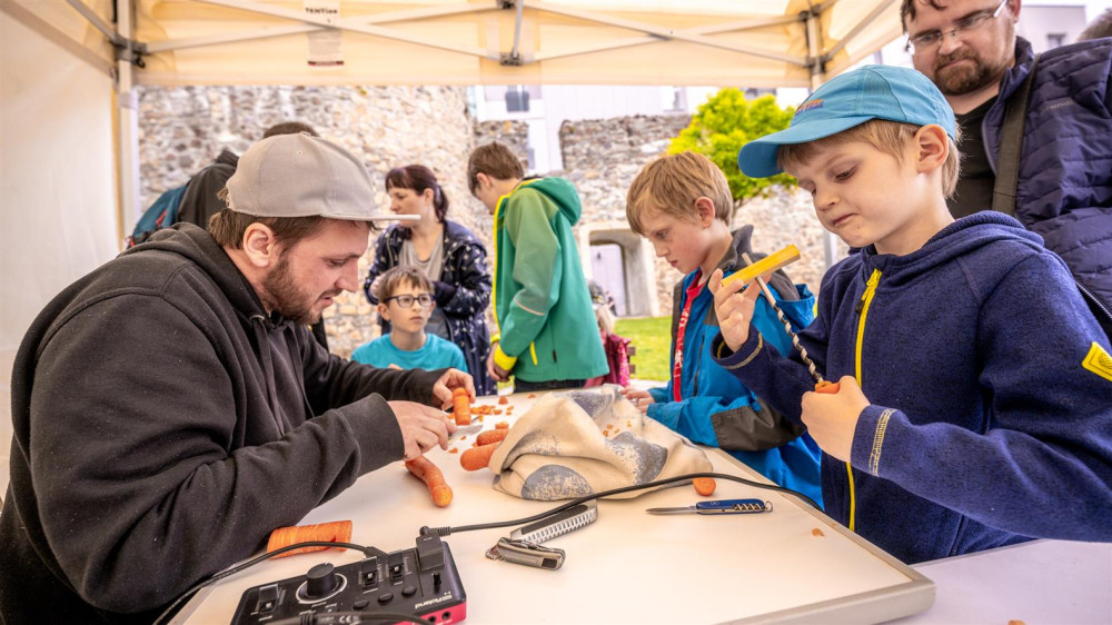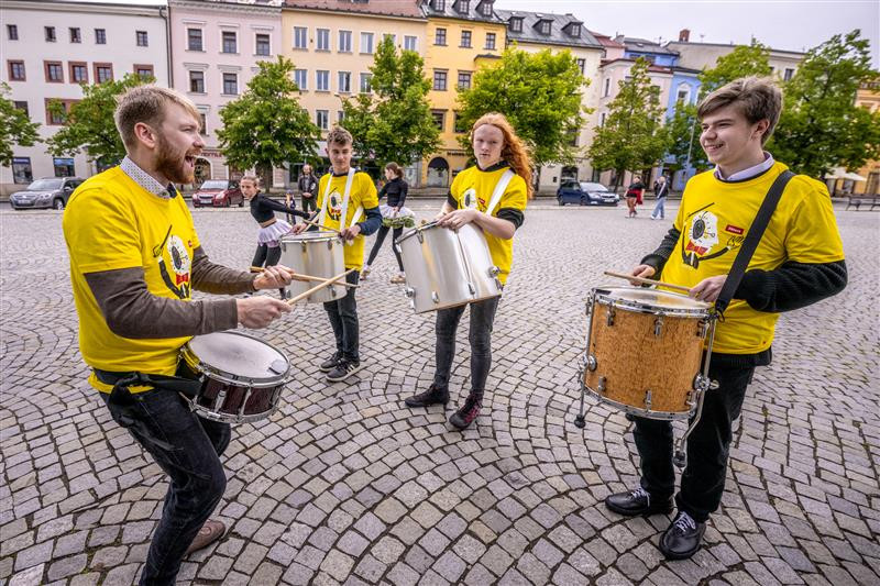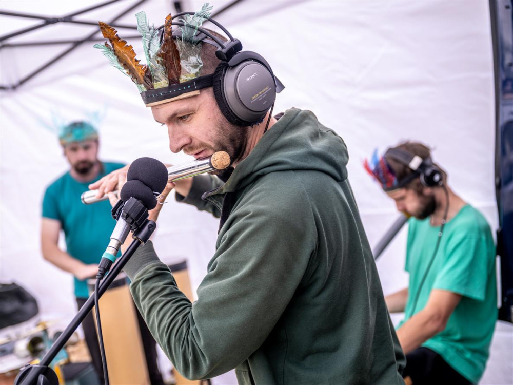 Banjo ze starého rendlíku nebo píšťalka z mrkve. Hudební hřiště návštěvníky bavilo