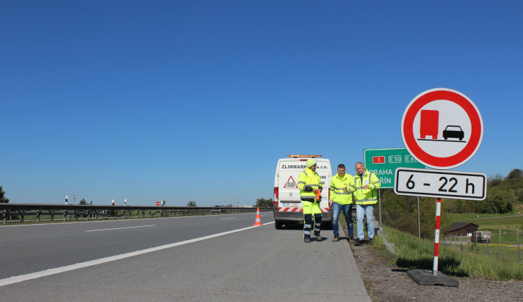 Poslední a bude hotovo. Na D1 dnes přibude poslední značka, která zakazuje předjíždění řidičům kamionů