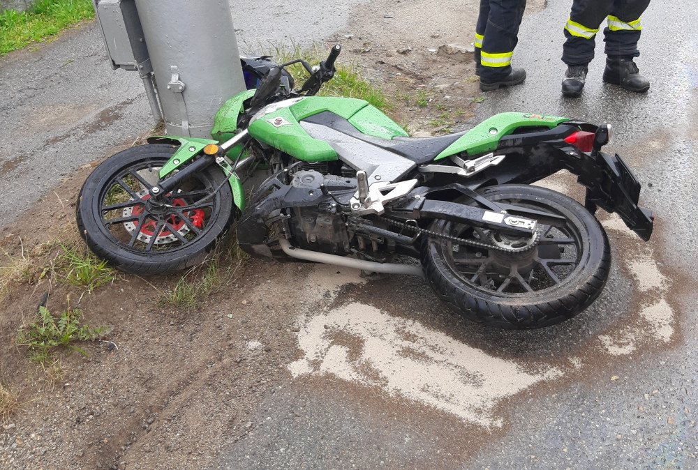 Nehoda na Romana Havelky. Motorkáře, který se srazil s autem, transportovali do jihlavské nemocnice