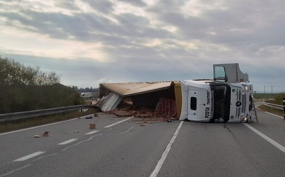 Tah z Jihlavy na Rakousko nakonec stál 11 hodin. Důvodem byla nehoda kamionu, který vezl cihly