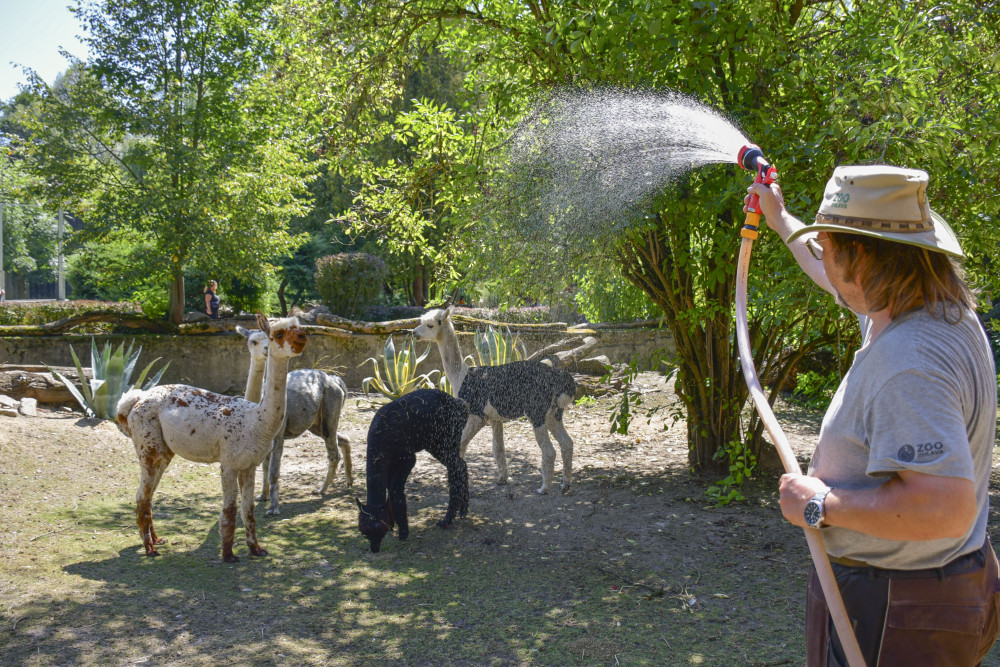 VIDEO: Chvilkové ochlazení pod sprchou. Podívejte se, jak alpaky v Zoo Jihlava zvládají horko