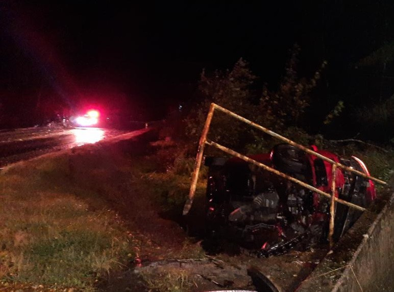 Řidič skončil v nemocnici. Havaroval poté, co mu do cesty spadl strom. Foto: se souhlasem Policie ČR