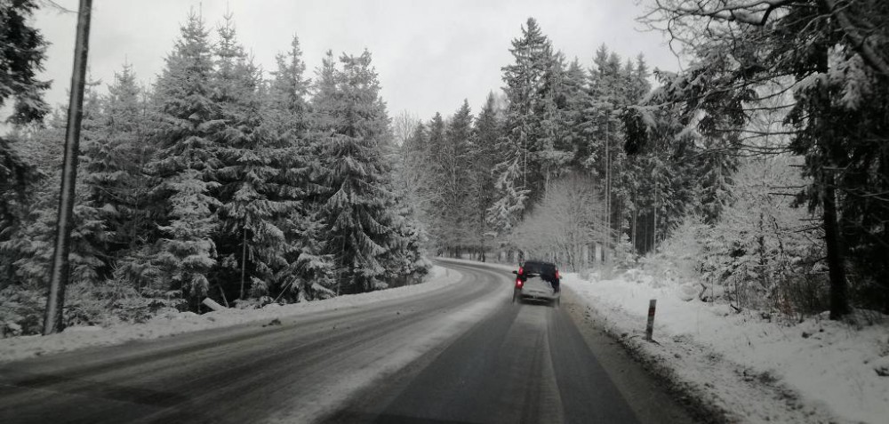 Na vedlejších silnicích na Vysočině leží zledovatělý sníh. Hlavní tahy jsou holé
