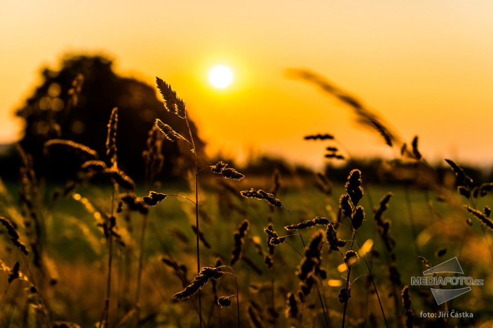 Západ slunce na podvečerní louce - Následuj svůj cíl, jdi za sluncem.