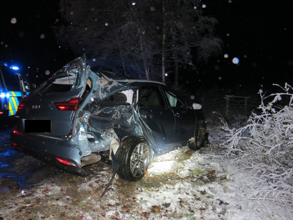 Mladý řidič nezvládl zatáčku a dostal smyk. Autem narazil do stromu