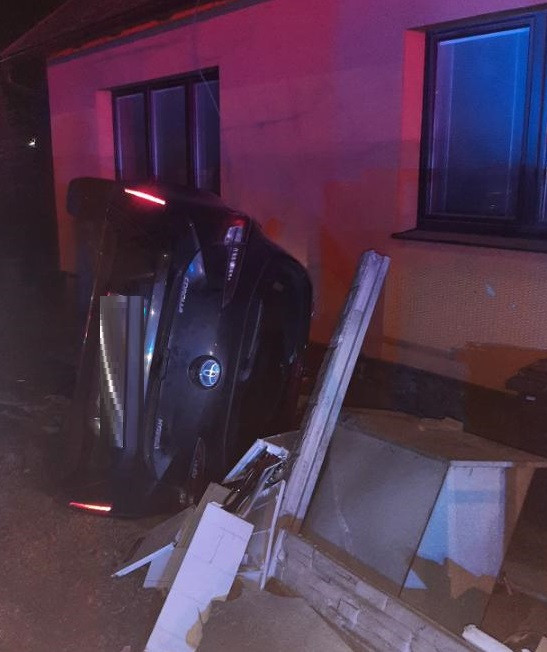Řidička na kraji Jihlavy nevhodně reagovala na překážku, otočila auto na bok. Foto: Se svolením Policie ČR