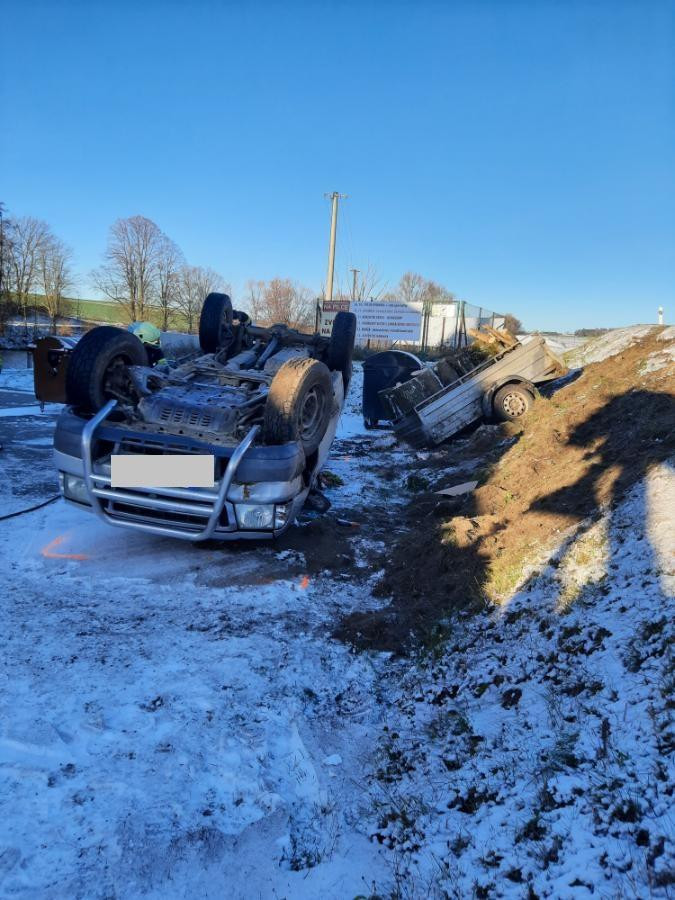 Řidič nezvládl řízení a v levotočivé zatáčce převrátil auto na střechu