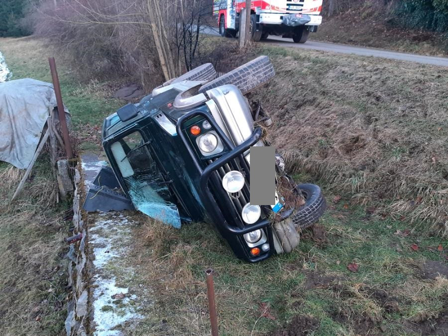 Senior nezvládl řízení džípu u Kamenice, po smyku skončil v příkopu