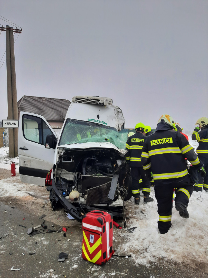 Mladý řidič dodávky dostal smyk. Vyjel do protisměru a srazil se s tahačem