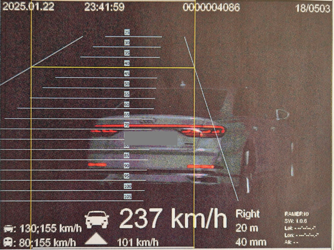 Policisté hlídají dálnici i o půlnoci. Cizinec po ní uháněl rychlostí 237 kilometrů v hodině. Foto: Se svolením Policie ČR