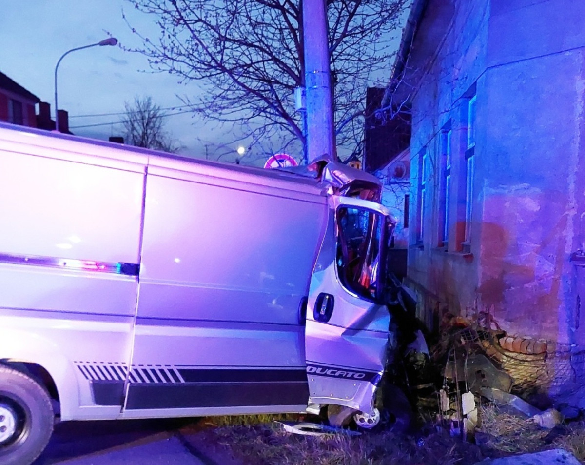 Řidič v dodávce na Třebíčsku boural. Narazil do sloupu, plotu a skončil ve zdi rodinného domu