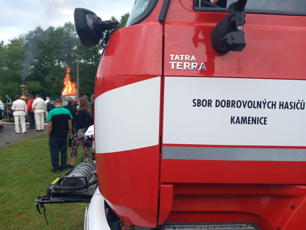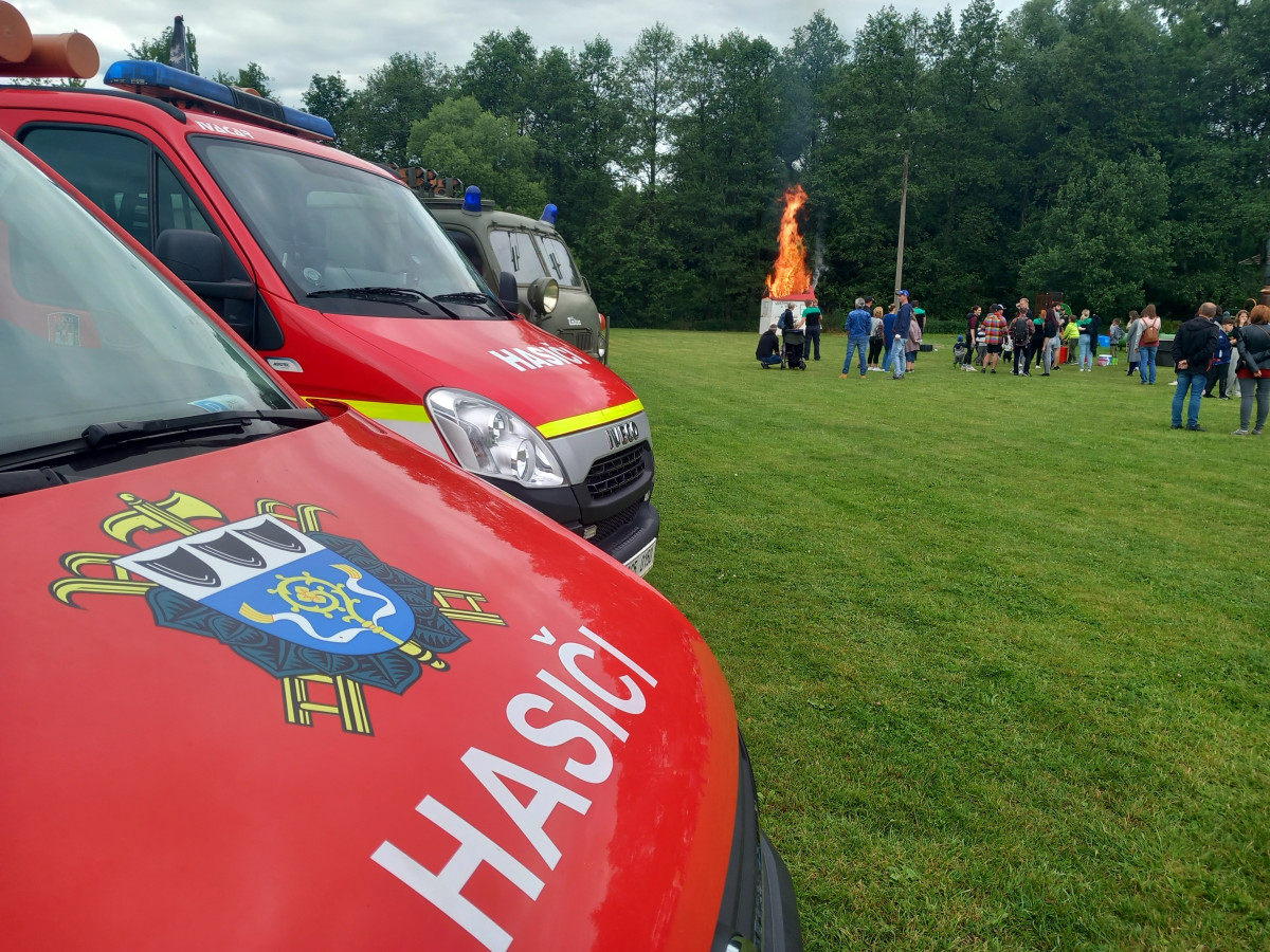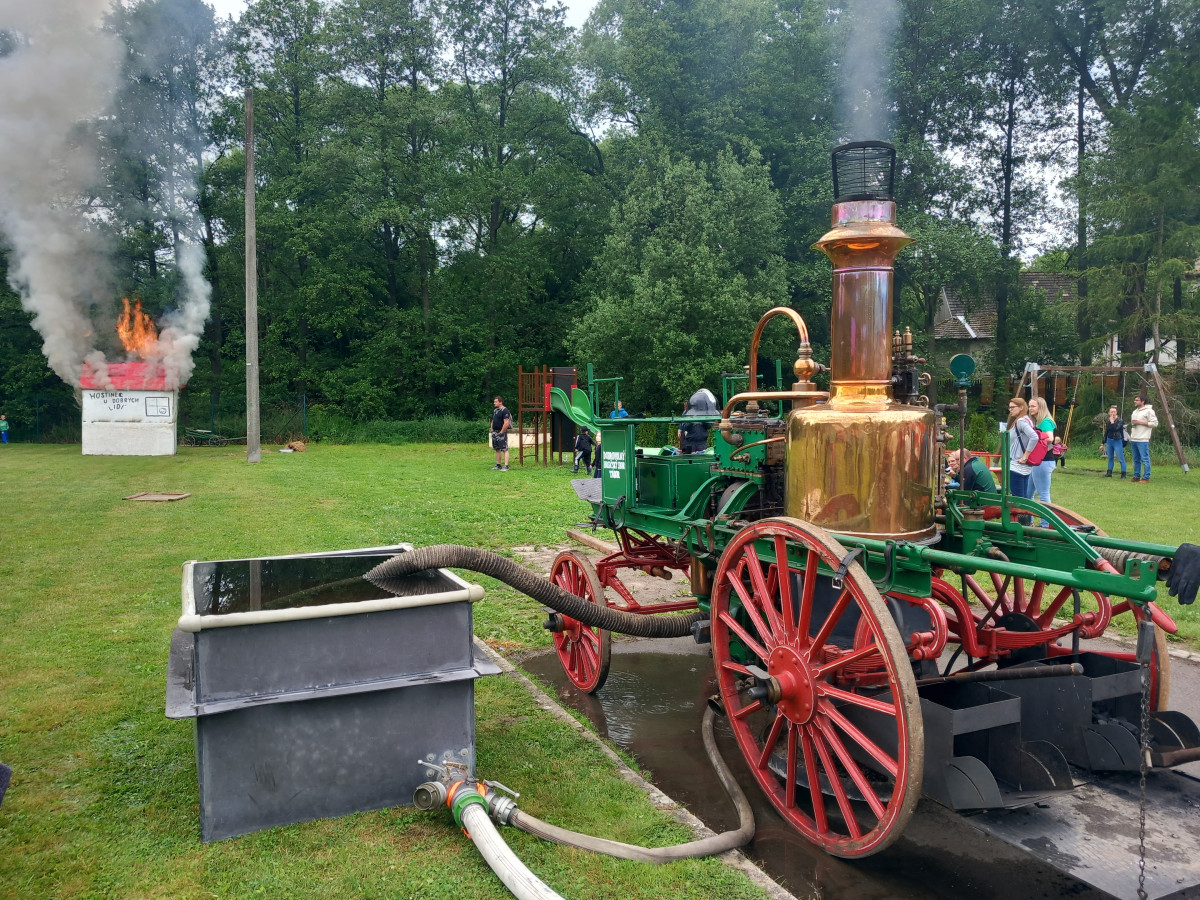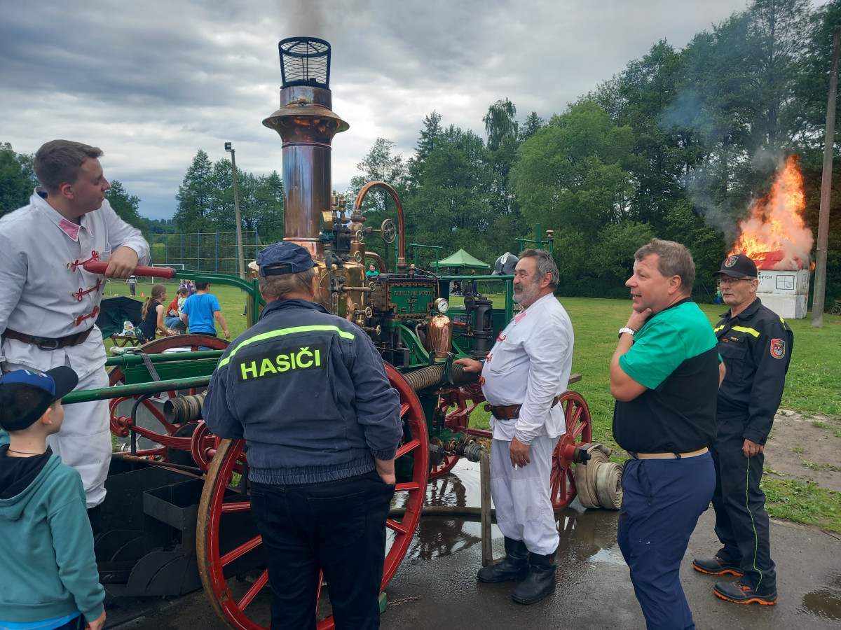 FOTO: Hasiči v Kamenici slaví 150 let, na hřišti hasili Hostinec U dobrých lidí