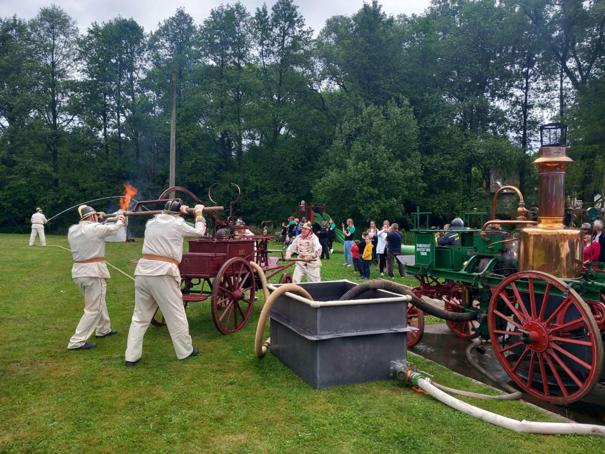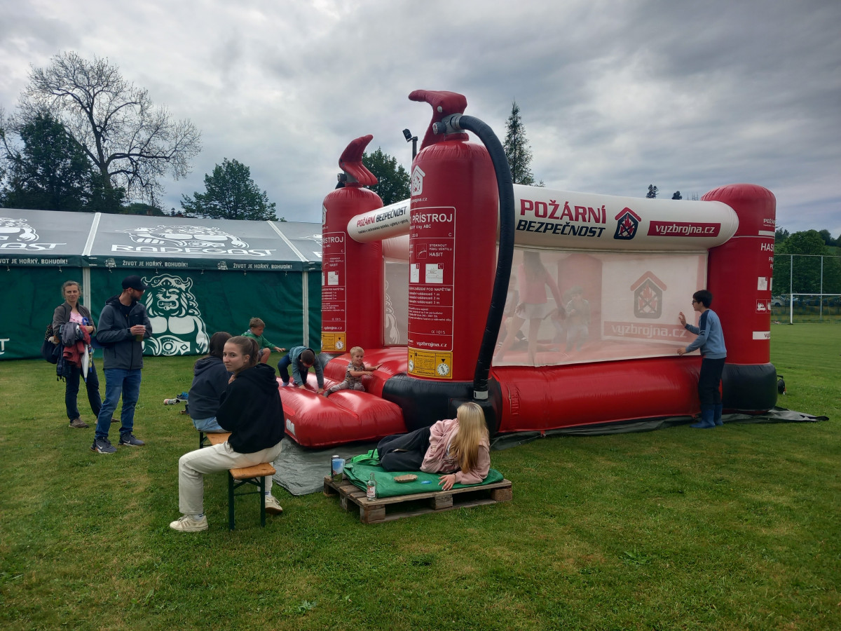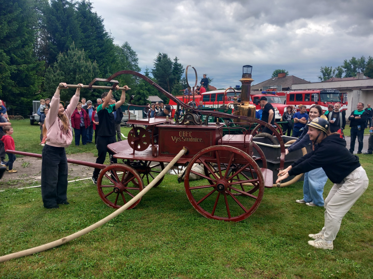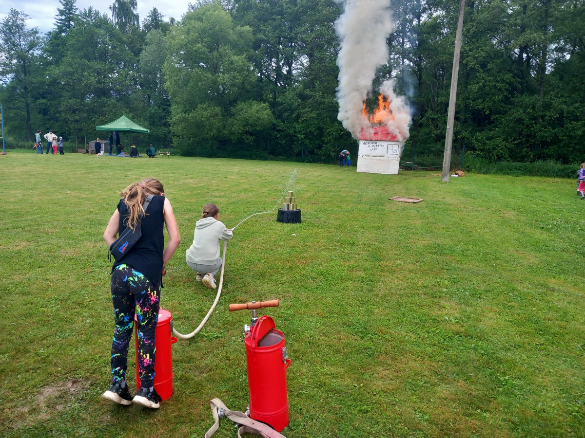 FOTO: Hasiči v Kamenici slaví 150 let, na hřišti hasili Hostinec U dobrých lidí