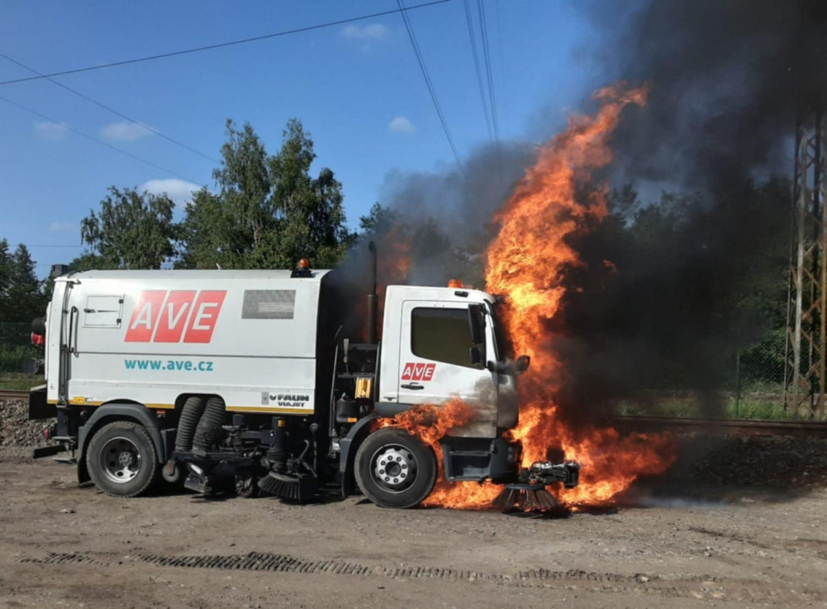 U Havlíčkova Brodu dnes navečer hořel zametací vůz, při požáru se nikdo nezranil