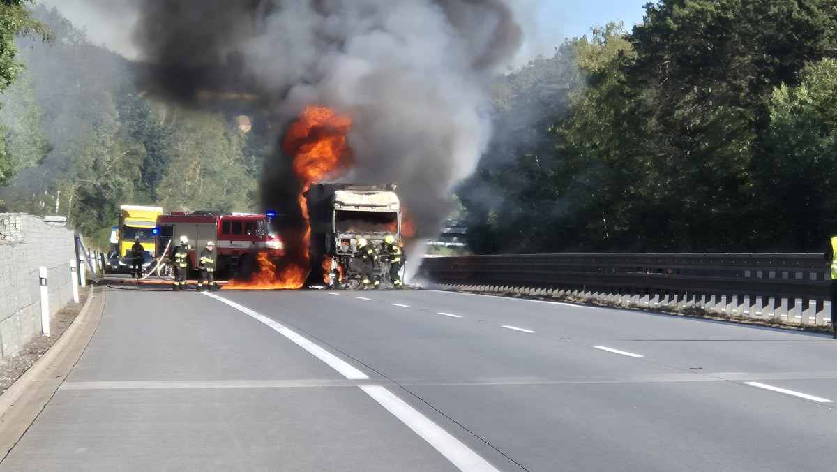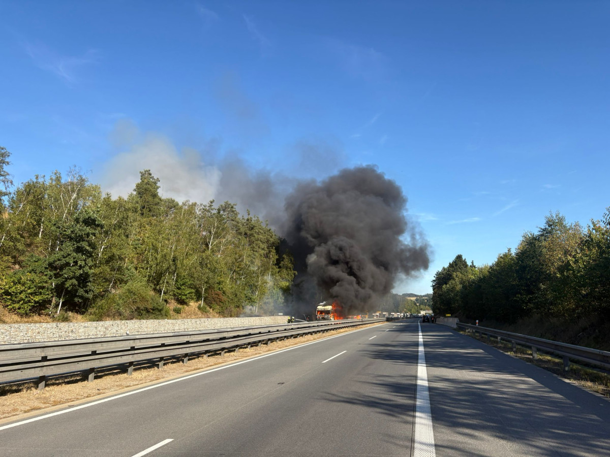 Řidičce na D1 hořel kamion. Z šoku ji dostávali policisté, co se vraceli ze školení