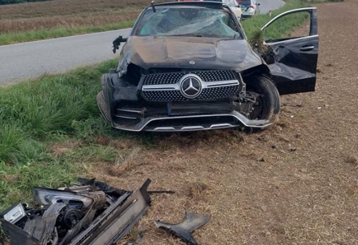 Řidič mercedesu jel moc rychle, po havárii skončil v poli