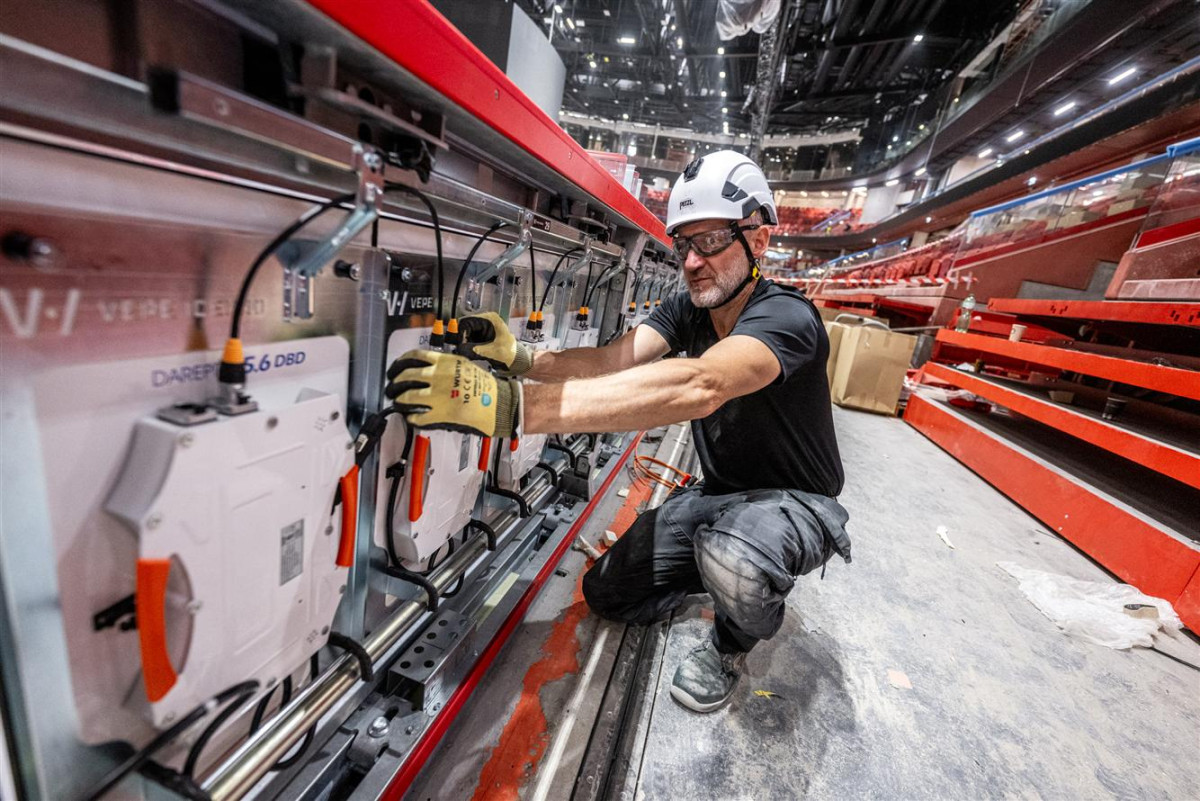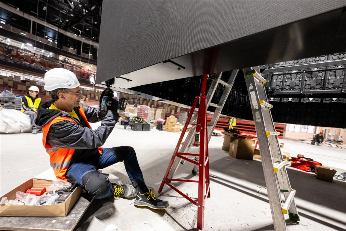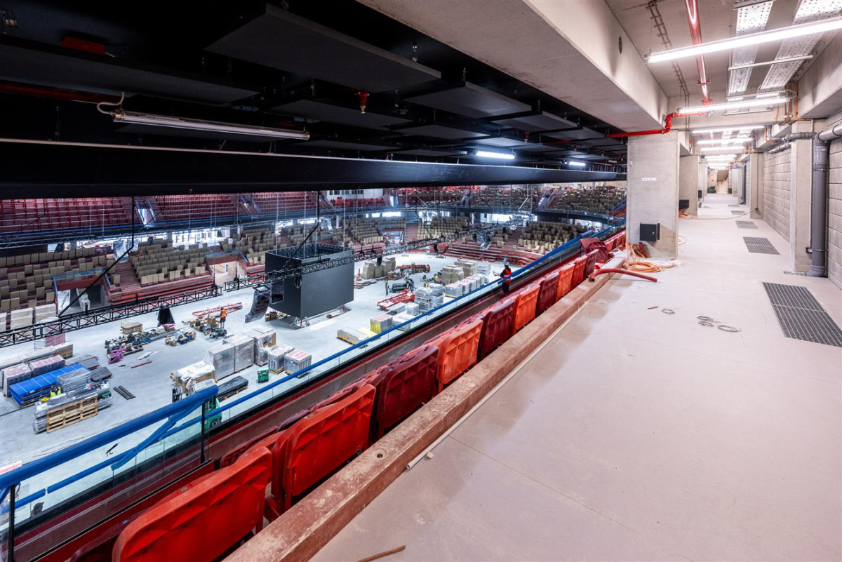 FOTO: Stavba Horácké arény míří do finále, unikátní LED mantinely jsou na místě