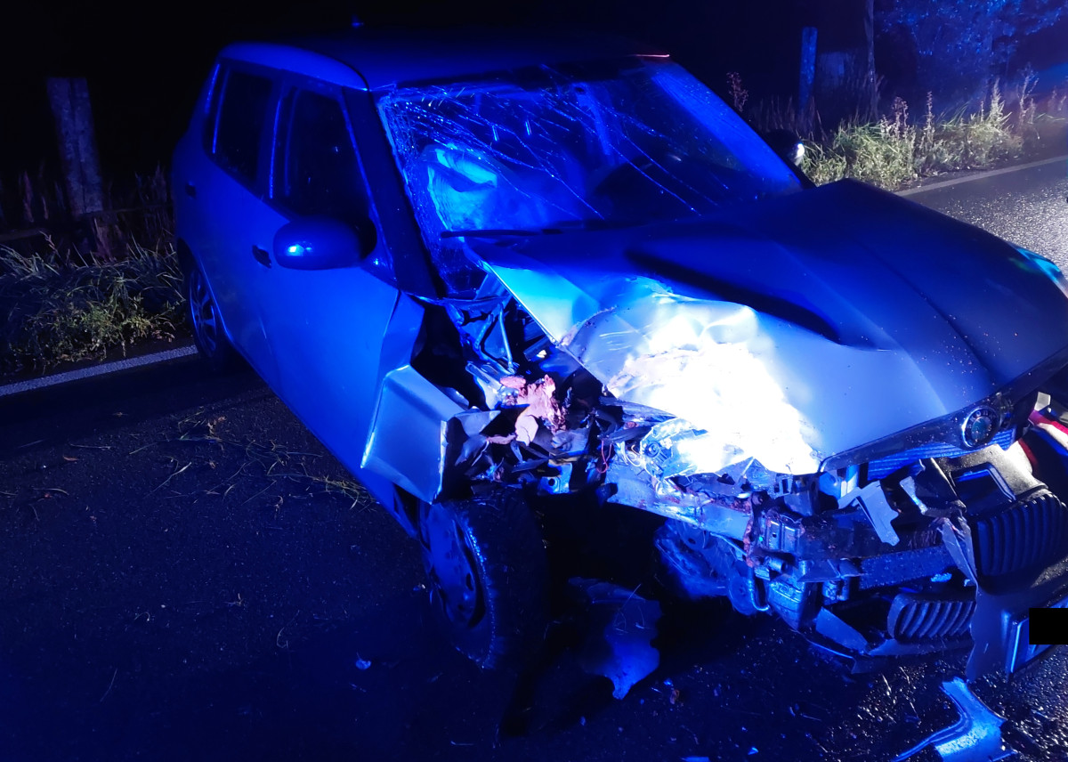 Řidiče u Horní Cerekve zastavil dvě hodiny po půlnoci strom. Měl téměř tři promile. Foto: Se svolením Policie ČR