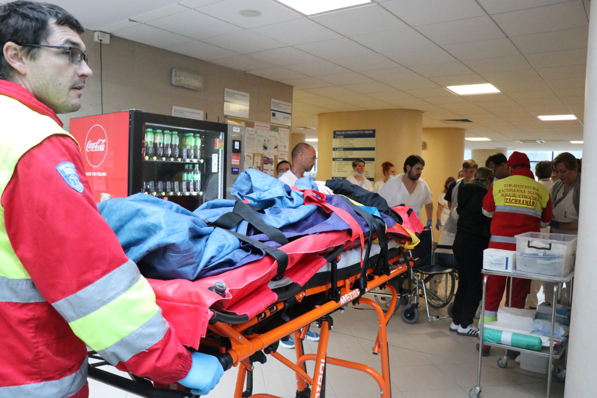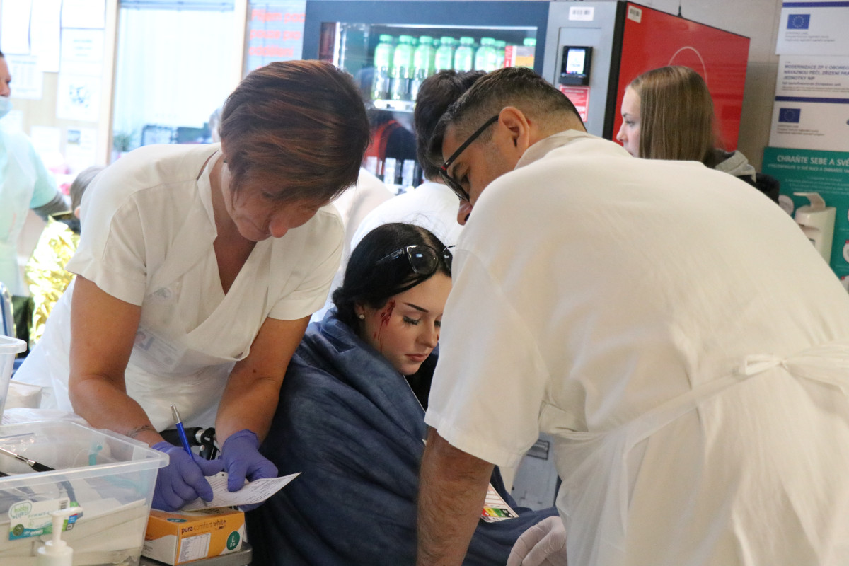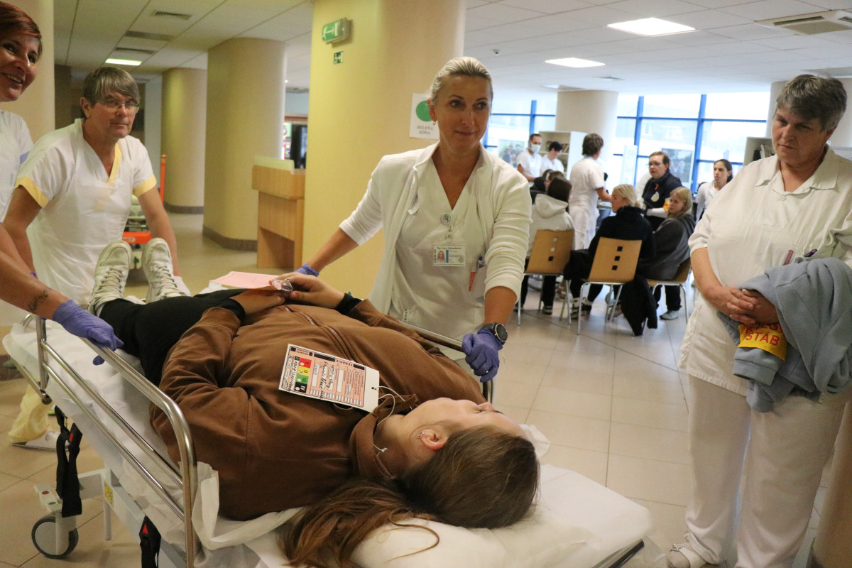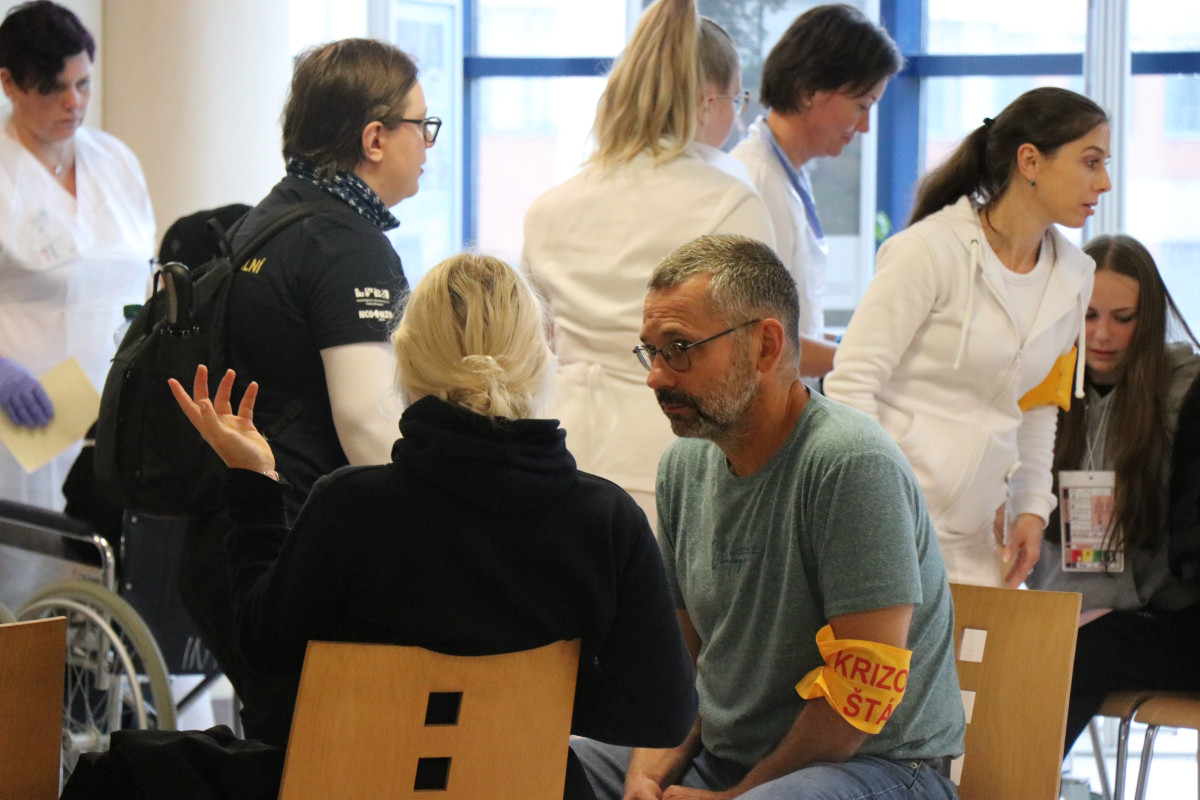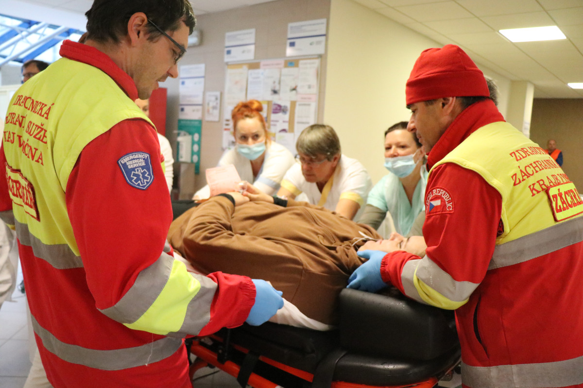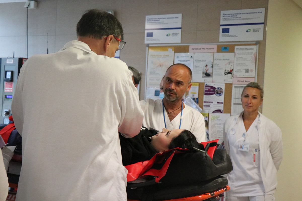 FOTO: V nemocnici ošetřovali zraněné po srážce vlaku s autobusem. Šlo o cvičení. Foto: Se svolením Nemocnice Nové Město na Moravě