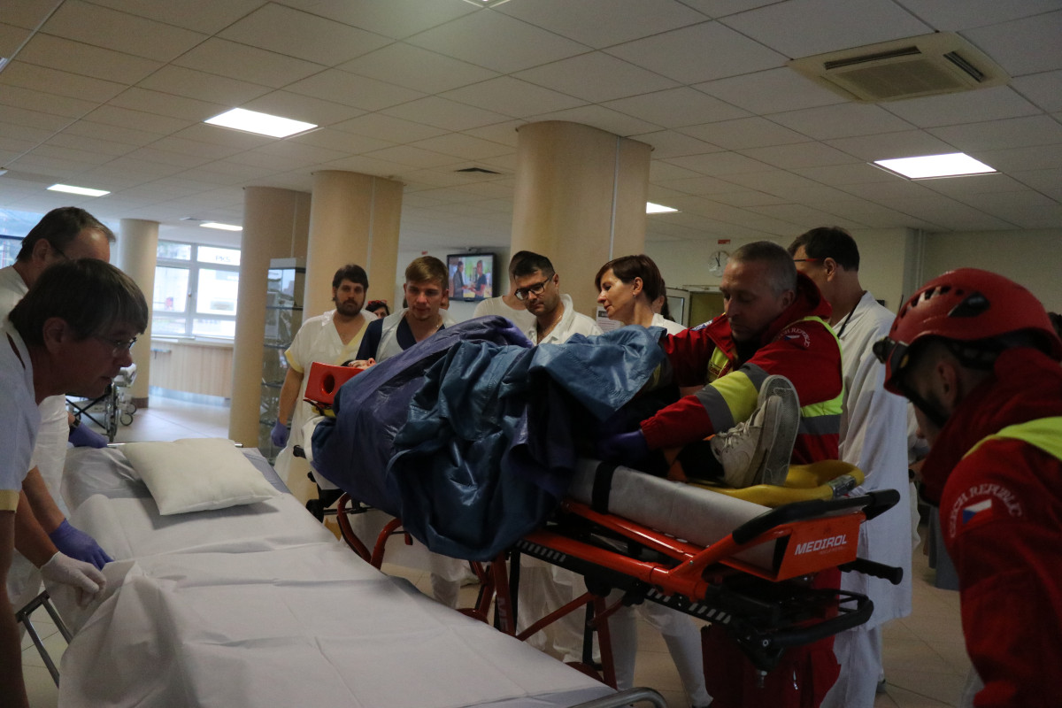 FOTO: V nemocnici ošetřovali zraněné po srážce vlaku s autobusem. Šlo o cvičení