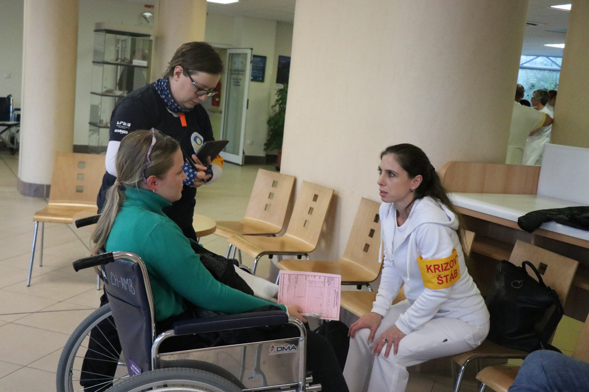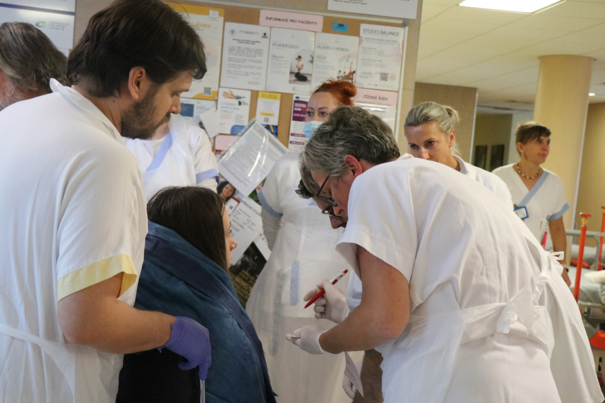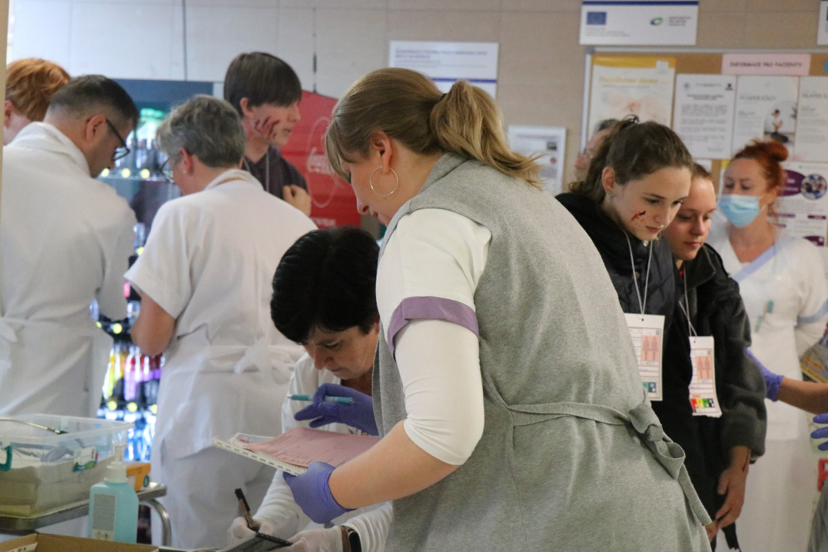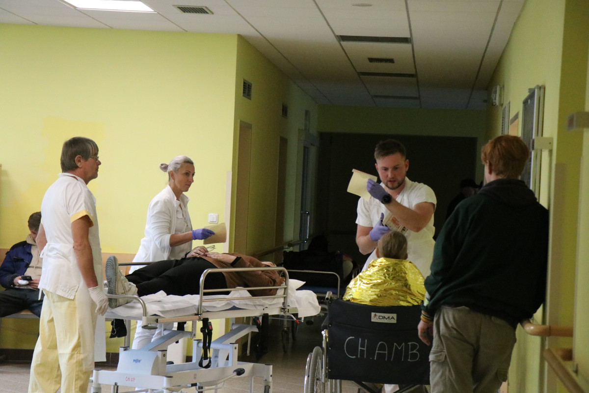 FOTO: V nemocnici ošetřovali zraněné po srážce vlaku s autobusem. Šlo o cvičení. Foto: Se svolením Nemocnice Nové Město na Moravě