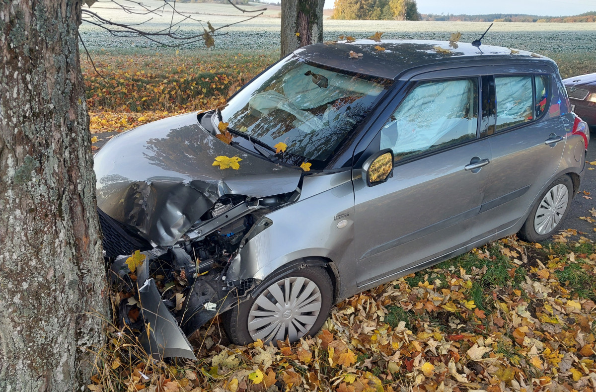 Senior skončil v nemocnici, jeho vůz zastavil až náraz do druhého stromu. Foto: Se svolením Policie ČR