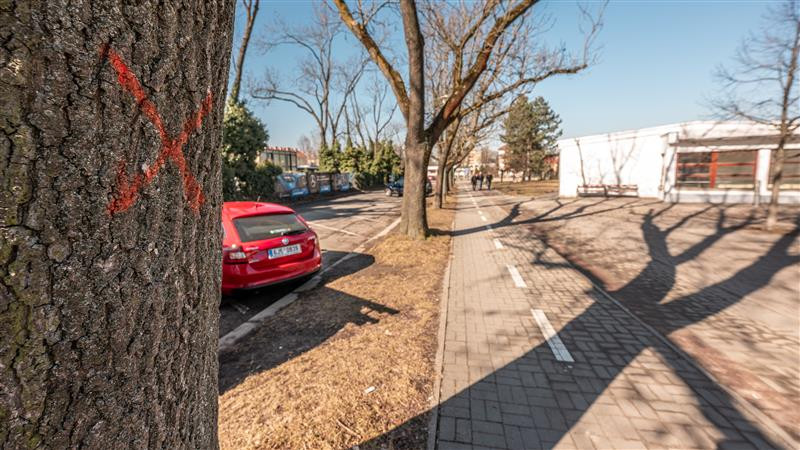 Stromy označené ke kácení, březen 2025 (foto: Město Jihlava)