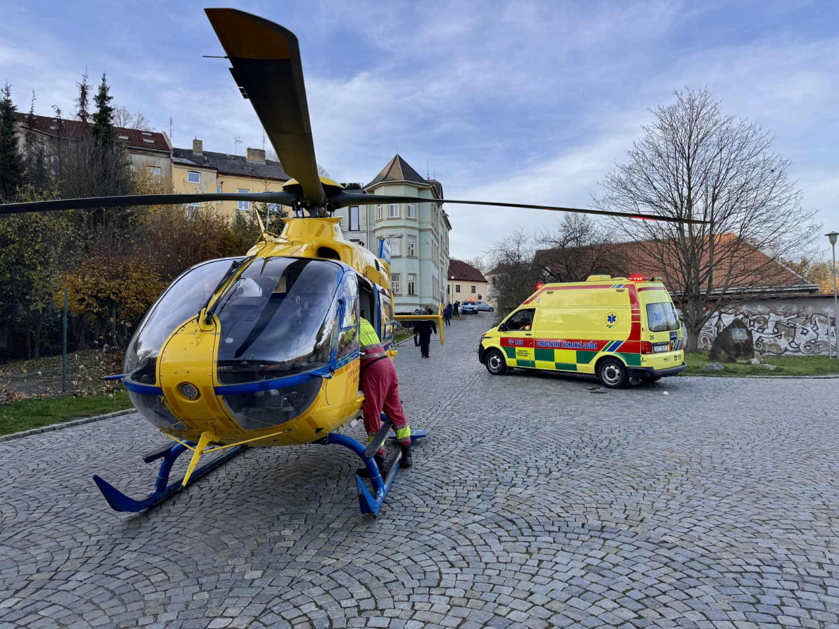 V pátek spadl muž z Brněnského mostu, vrtulník musel přistát v samém centru města