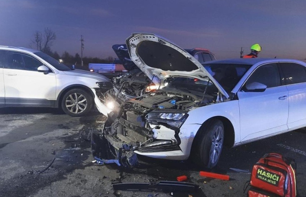 U Křoví se na křižovatce srazila tři auta, škoda je téměř půl milionu