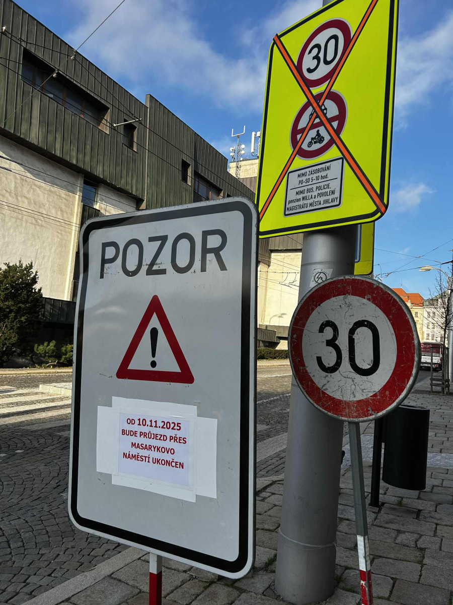 Pozor v centru Jihlavy. Masarykovo náměstí od dnešního dne zase není průjezdné