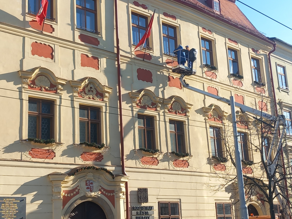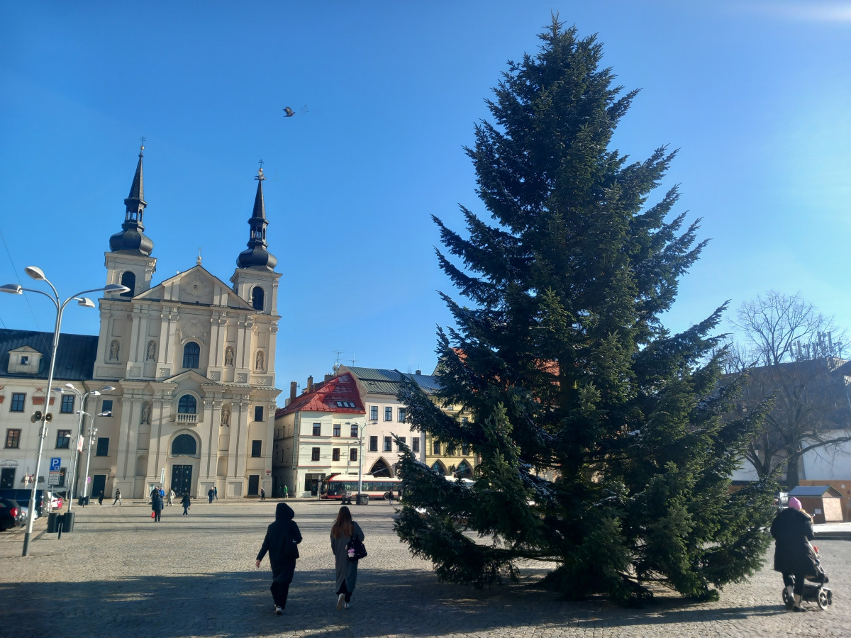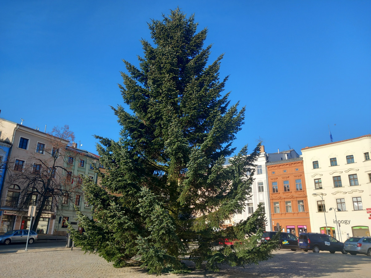 FOTO: Na náměstí v Jihlavě je vánoční strom, svítící ježci na lampách zatím chybí