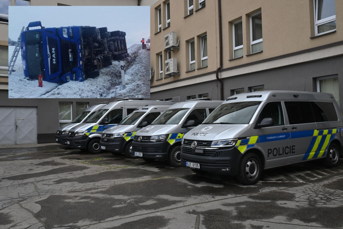 Sníh komplikuje dopravu na Vysočině, s dojezdem k nehodám mají problémy i policisté. Foto: Marie Buláková + se svolením Policie ČR