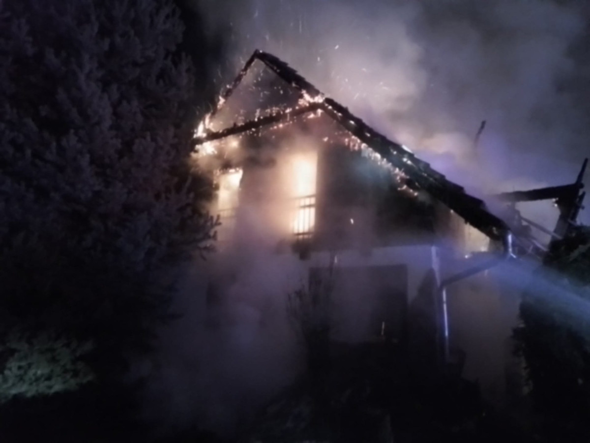 Na Třebíčsku hořela o půlnoci na dnešek chata, škoda je předběžně šest milionů. Foto: Se svolením HZS Kraje Vysočina