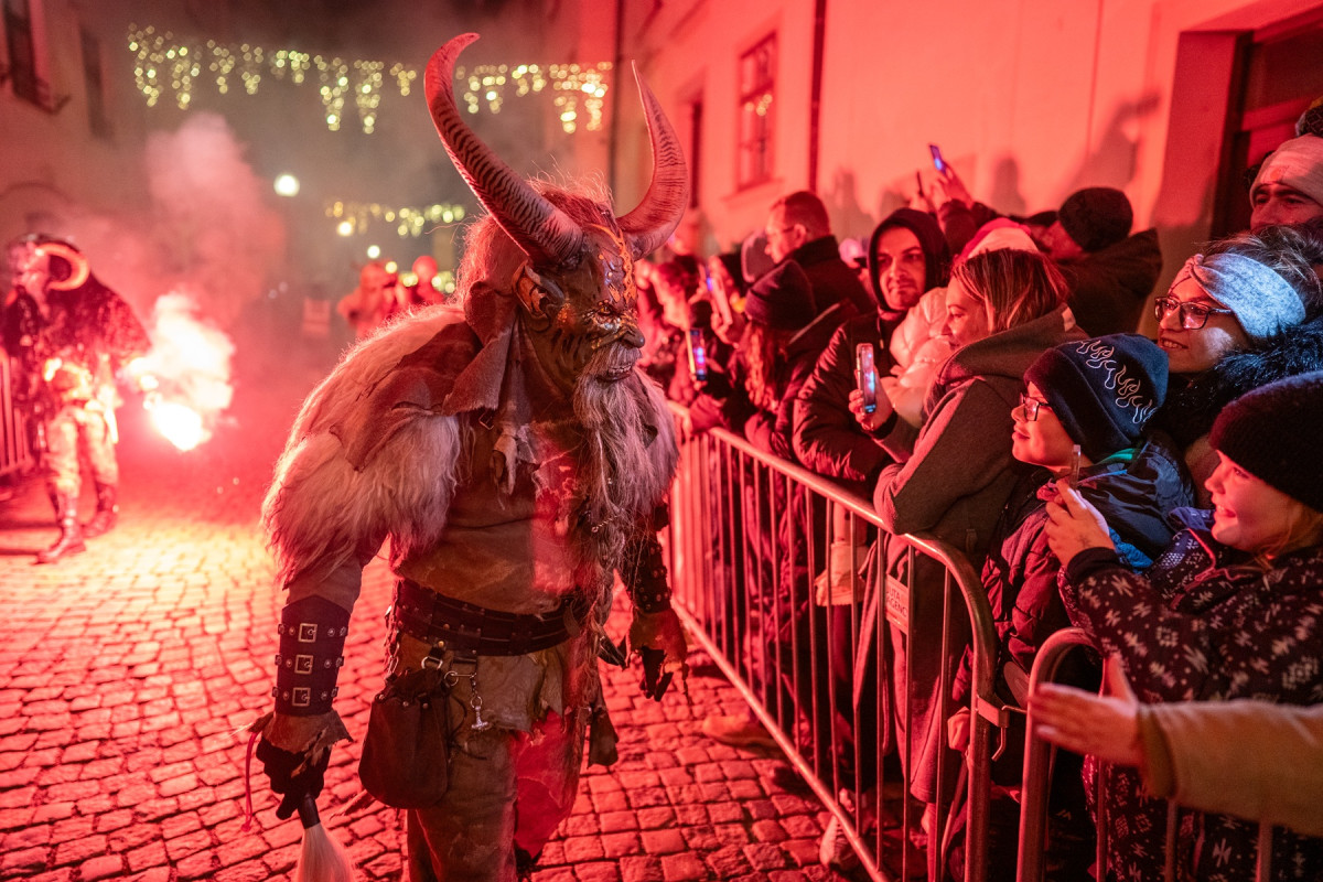 FOTO: Centrem Jihlavy prošel průvod krampusáků, davy přihlížejících děsil i bavil. Foto: Tomáš Kaser