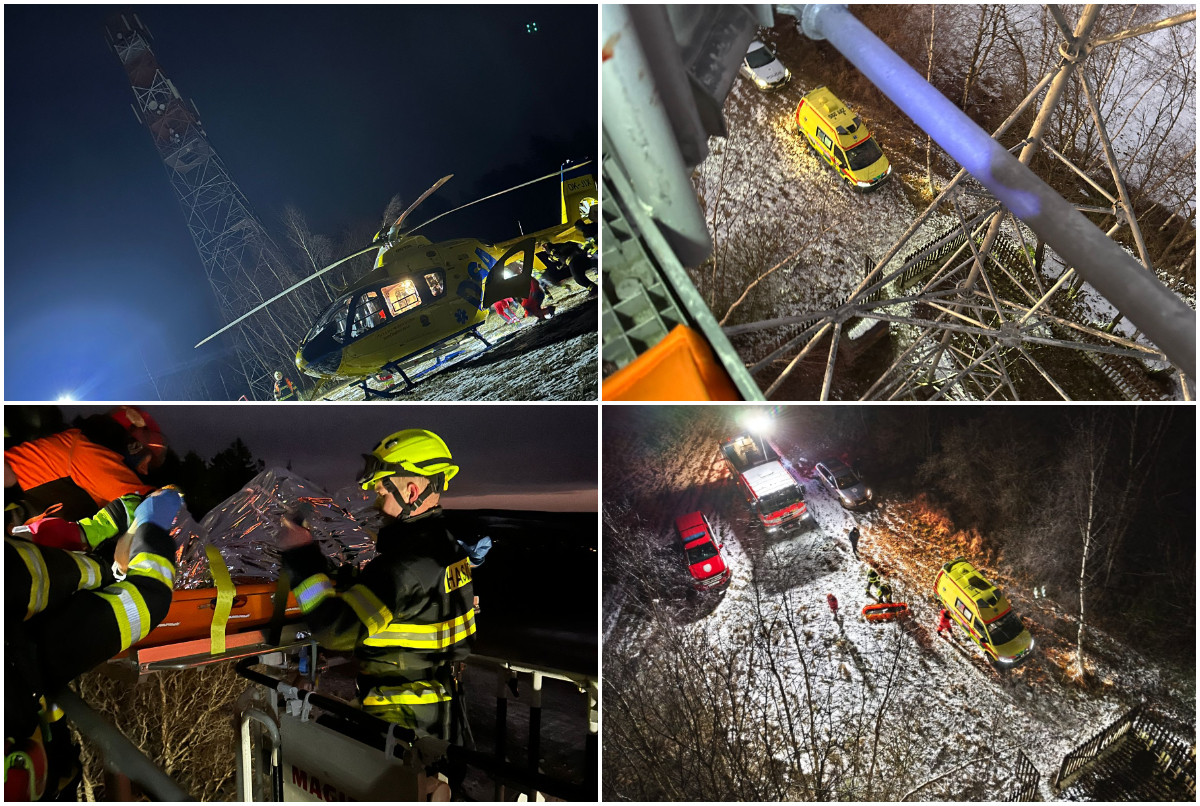 Žena vylezla na vysílač, plakala a nemohla se hýbat. Letěl k ní i vrtulník