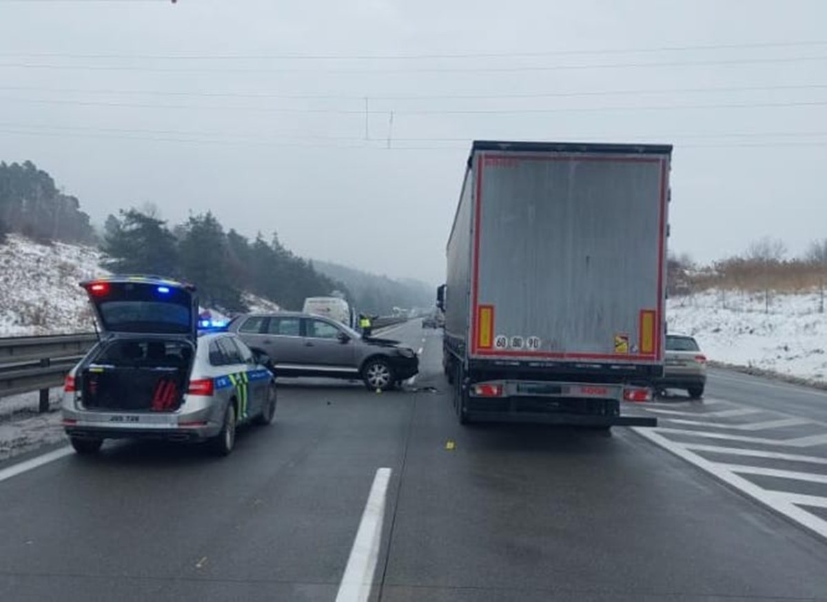 Na dálnici se srazila tři auta, místo je s opatrností průjezdné. Foto: Se svolením Policie ČR